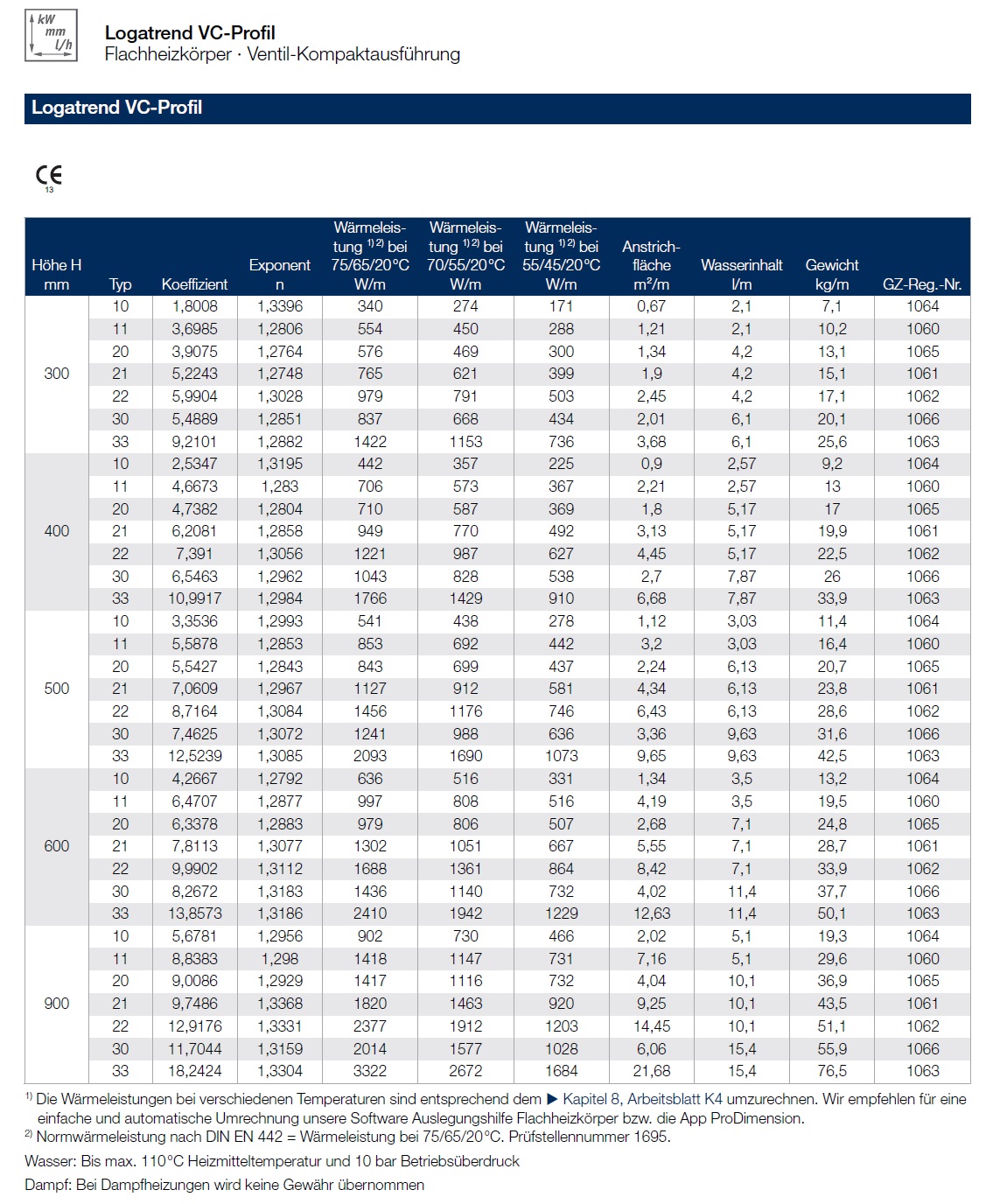 Produktinformationen "Buderus Logatrend Heizkörper Ventilheizkörper VC Profil, Typ 11, 21, 22, 33, alle Größen"